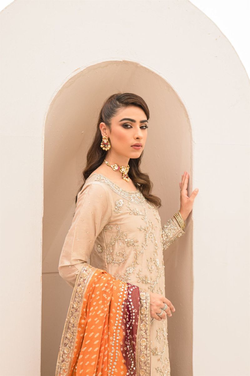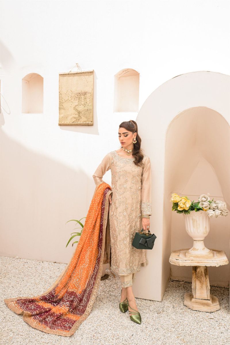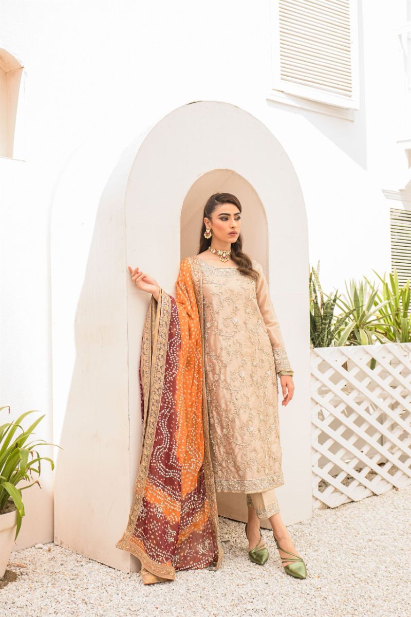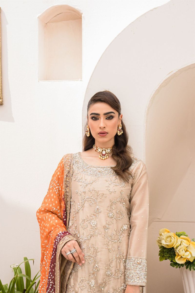 FABRIC: TISSUE SHIRT, RAWSILK PANTS, KAMDANI CHUNARI CHIFFON CHADDAR OR TISSUE CHAN DUPATTA.